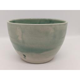 A stonware clay bowl overlaid with transparent sea green glaze, made by contemporary potter Louise Tomlins of Harbour Pots in her garden studio on the river Thames. This bowl measures 13cm in diameter and 9cm high. When filled with my natural organically scented candle it will burn for approx 80 hours, dont forget to select your choice of scent.